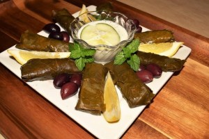Stuffed Grape Leaves with Tzatziki Sauce (Vegetarian)