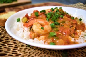January 10th is a day that will make me smile for years to come! Last year on this day, my now fiancé and I were gallivanting around New Orleans. He had never visited this favorite city of mine, so I had a grand time showing him the sites and visiting with dear friends. On the last day of the trip, before heading to the airport, we took one last stroll around the French Quarter. As we passed through Jackson Square, where street musicians filled our ears with jazz and the sweet smell of beignets lingered in the air, my darlin’ popped the question! It was the perfect day and we celebrated the memory this past weekend with a big ol’ pot of etouffée! Cajun etouffée is usually made with just crawfish, but you will find the dish with shrimp being the star of the show as well. Since we were celebrating, I decided to make it with both!